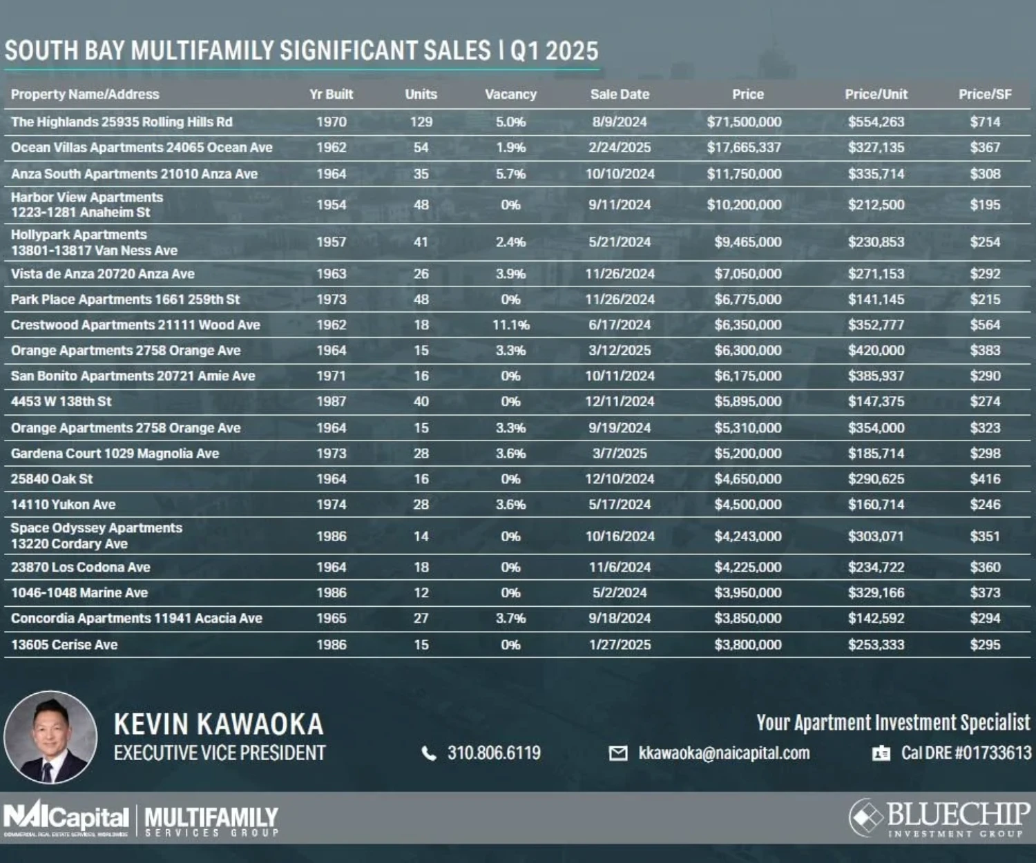 South Bay Market Info 04 Apr 2025 Multifamily Significant Apartment Sales – South Bay | Q1 2025 Kevin Kawaoka