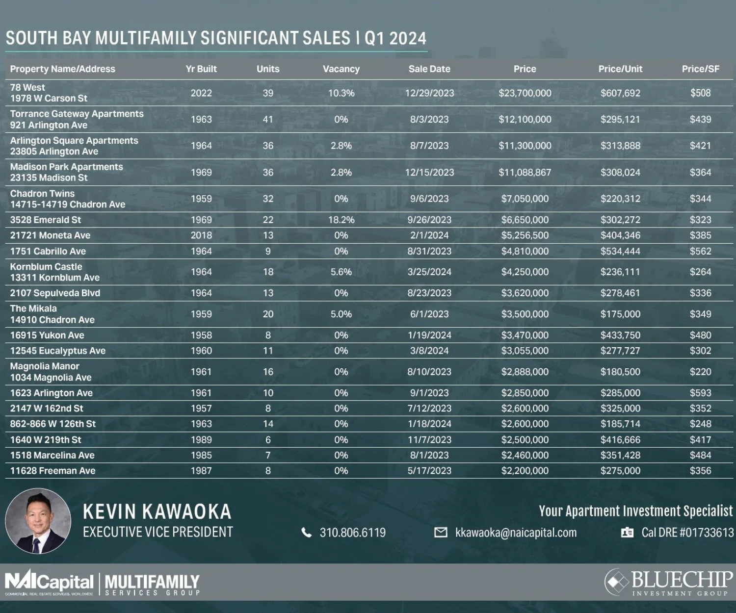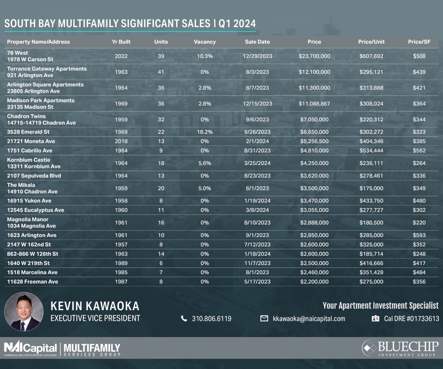 09 Jun 2024 South Bay Multifamily Significant Sales | q2 2024 South Bay Multifamily Significant Apartment Sales | Q2 2024